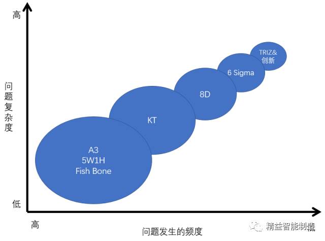 面对这5类问题,很多企业容易犯一个毛病,那就是期望用一种解决问题的方法或者技术能够解决所有类型的问题。当然,这一点是可以做到的,比如用解决问题类型5的方法和技术肯定可以解决其它类型的问题,但是在实际工作中,解决问题是需要成本的,如果简单的问题也用复杂的解决方法,那么企业的运营成本会居高不下,解决问题也缺乏效率,也就是人们常说的“杀鸡用牛刀”。